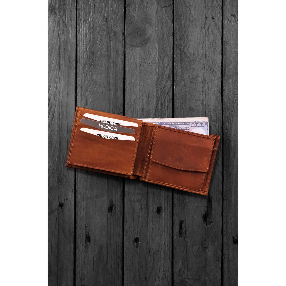 Zendar-กระเป๋าสตางค์ผู้ชายคลาสสิกช่องใส่เหรียญหนังแท้