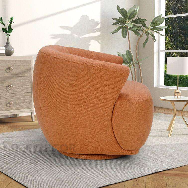 Zerina 360หมุนได้แบบหมุนเวียน, เก้าอี้ทรงกระบอกฐานกว้างหุ้มด้วยหมอนรองเอวสำหรับห้องนั่งเล่น