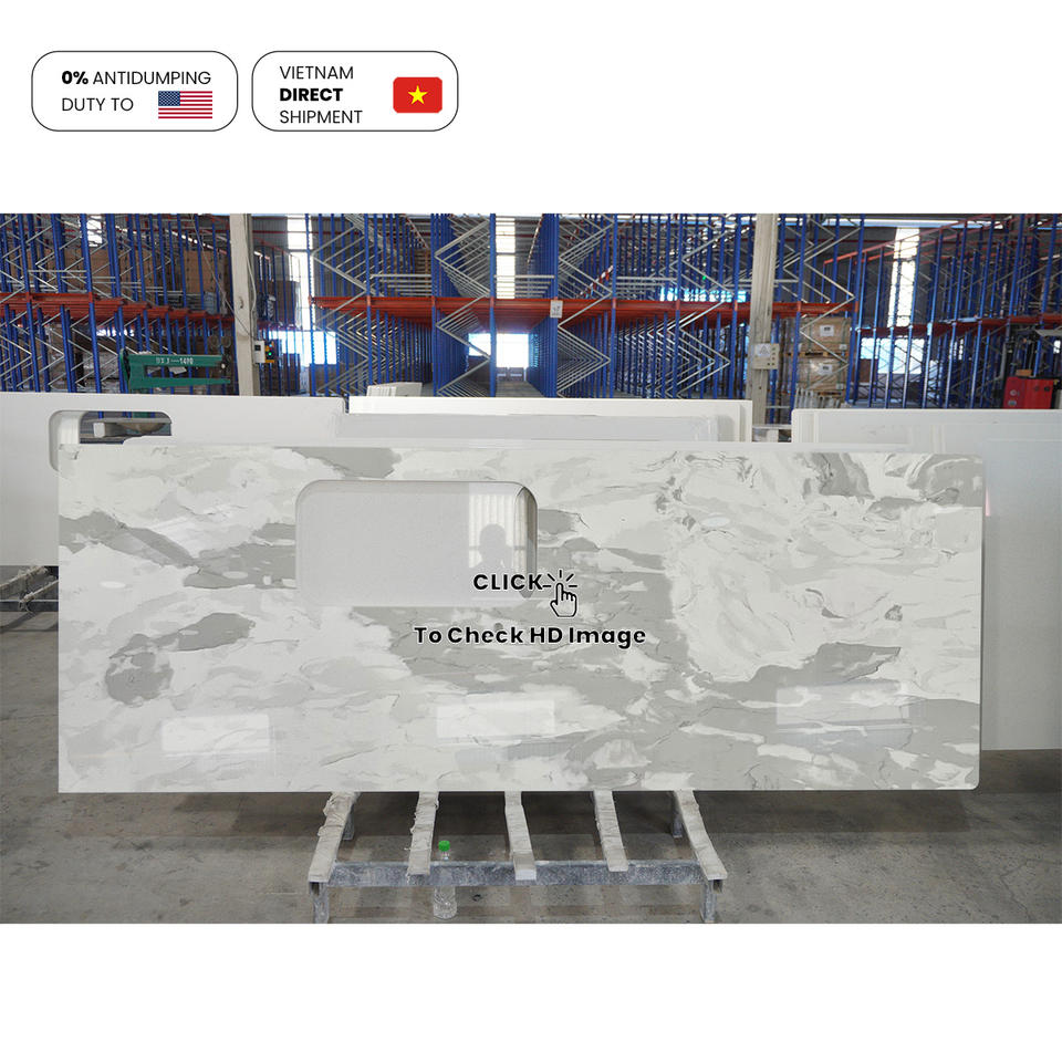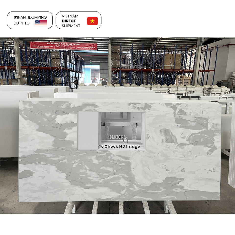 แผ่นหินควอตซ์สังเคราะห์ NV877 ทนความร้อน ไม่ซึมซับน้ำ สำหรับงานตกแต่งบ้าน สำนักงาน และเคาน์เตอร์ครัว