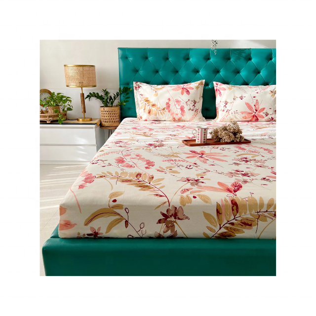 ชุดเครื่องนอนผ้าฝ้ายปักลายดอกไม้สีพีชไม่มีขยะ100% เป็นมิตรต่อสิ่งแวดล้อมชุด310TC
