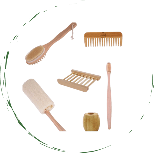 ชุดอุปกรณ์ห้องน้ำแบบไร้ขยะ ชุดแปรงอาบน้ำ ฟองน้ำ และอุปกรณ์ขัดผิวที่จำเป็น