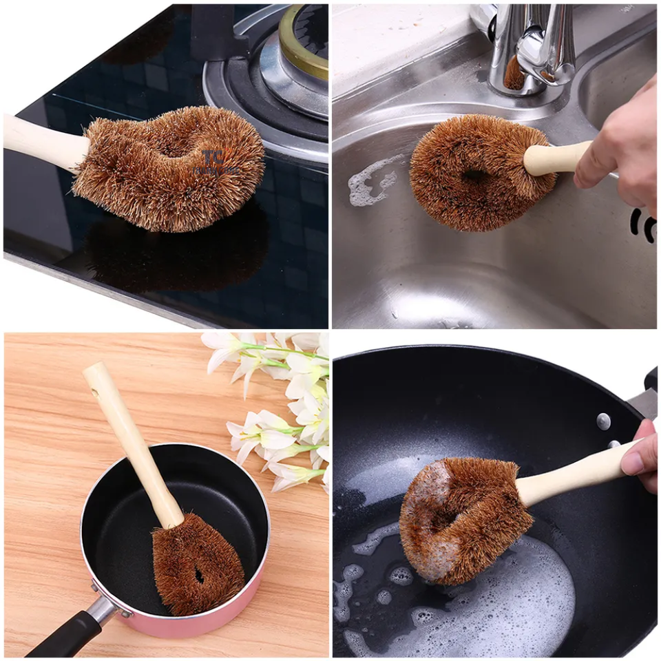 แปรงทำความสะอาดเส้นใยมะพร้าวทรงกลมเครื่องมือและอุปกรณ์เสริมสำหรับใช้ในครัวเรือน