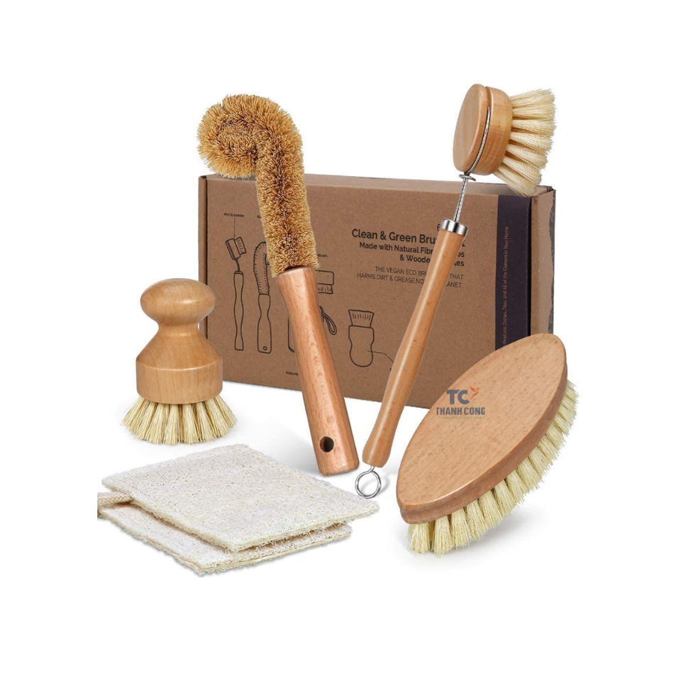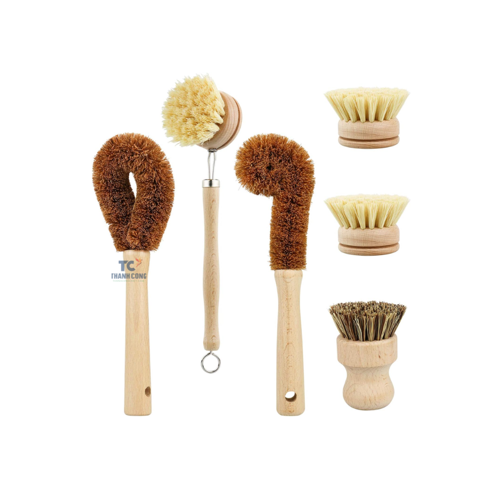แปรงขัดเส้นใยมะพร้าวพร้อมด้ามจับไม้ไผ่ใช้ในห้องครัวไม่ทิ้งขยะ