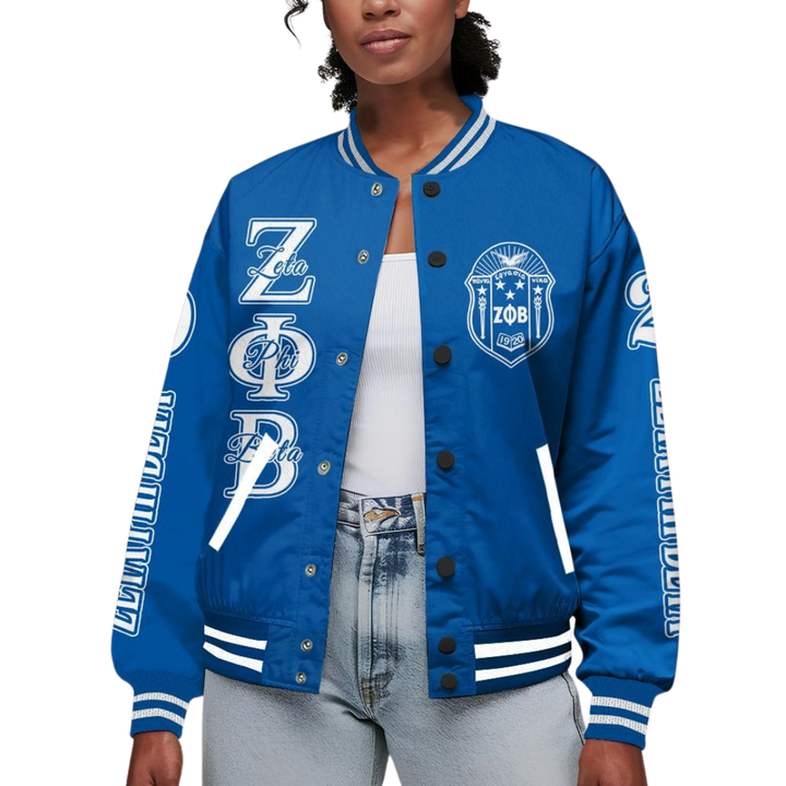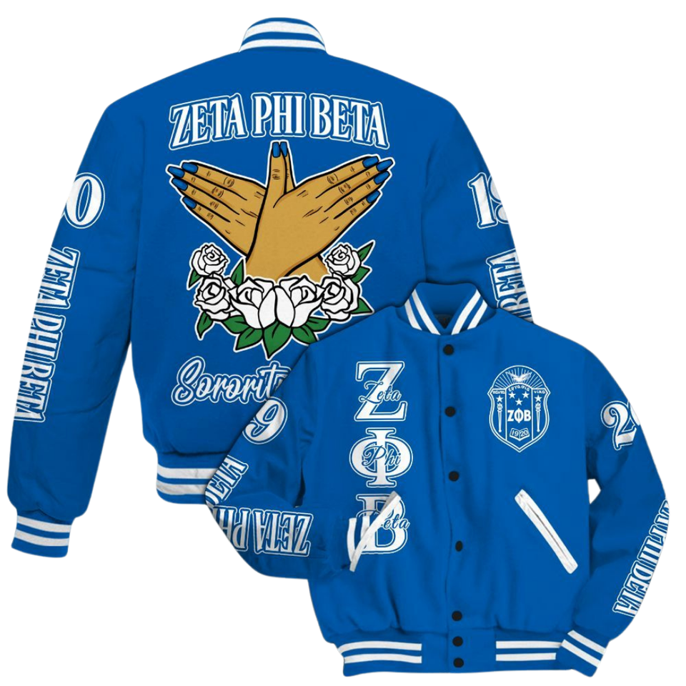 Zeta Phi เสื้อแจ็กเก็ตเจอร์แมน Founders สำหรับ1920รุ่นเบต้าสีฟ้าและสีขาว