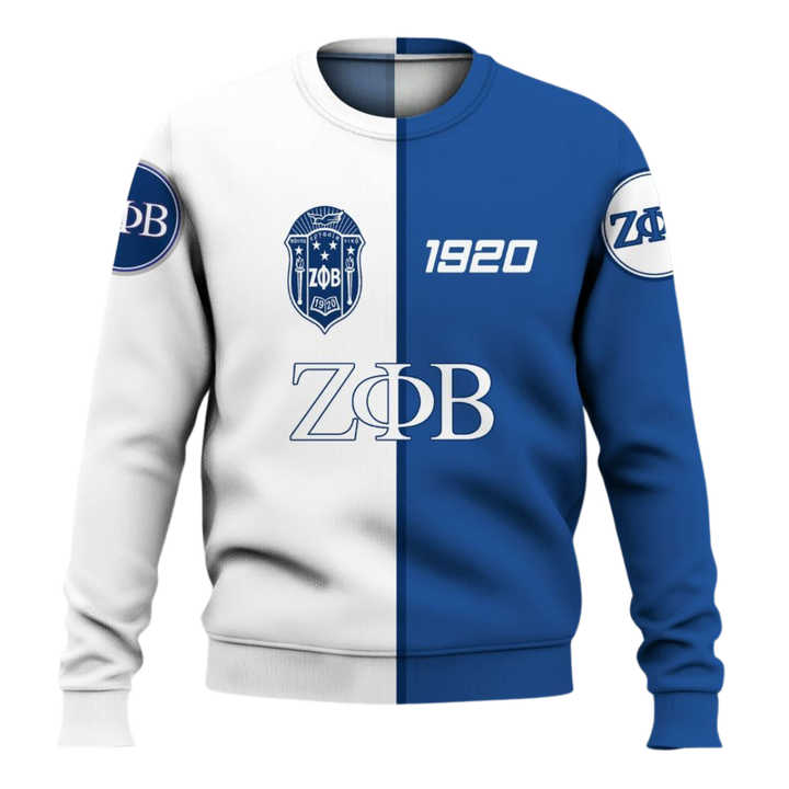 เสื้อสเวตเชิ้ตคอกลมสีน้ำเงินกรีก Zeta Phi Beta 1920 สำหรับผู้หญิง ปักลายสมาคมนักศึกษาหญิง บริการสั่งทำพิเศษ