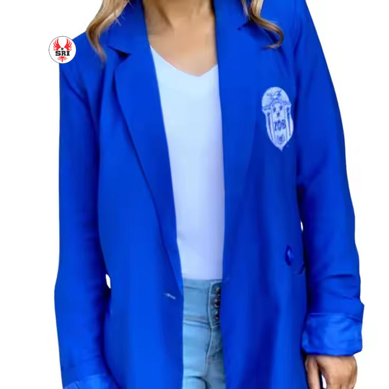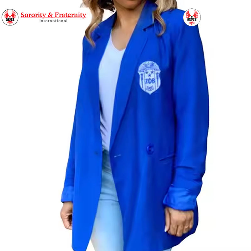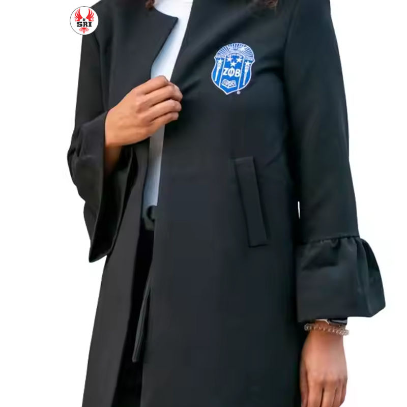 แจ็กเก็ตแขนกระดิ่งสีดำ Zeta phi Beta พร้อมเกราะปักสำหรับการประชุมสโมสรและโอกาสทางการ