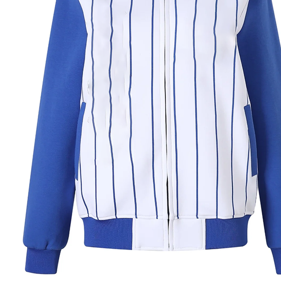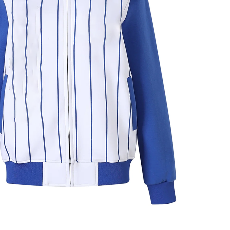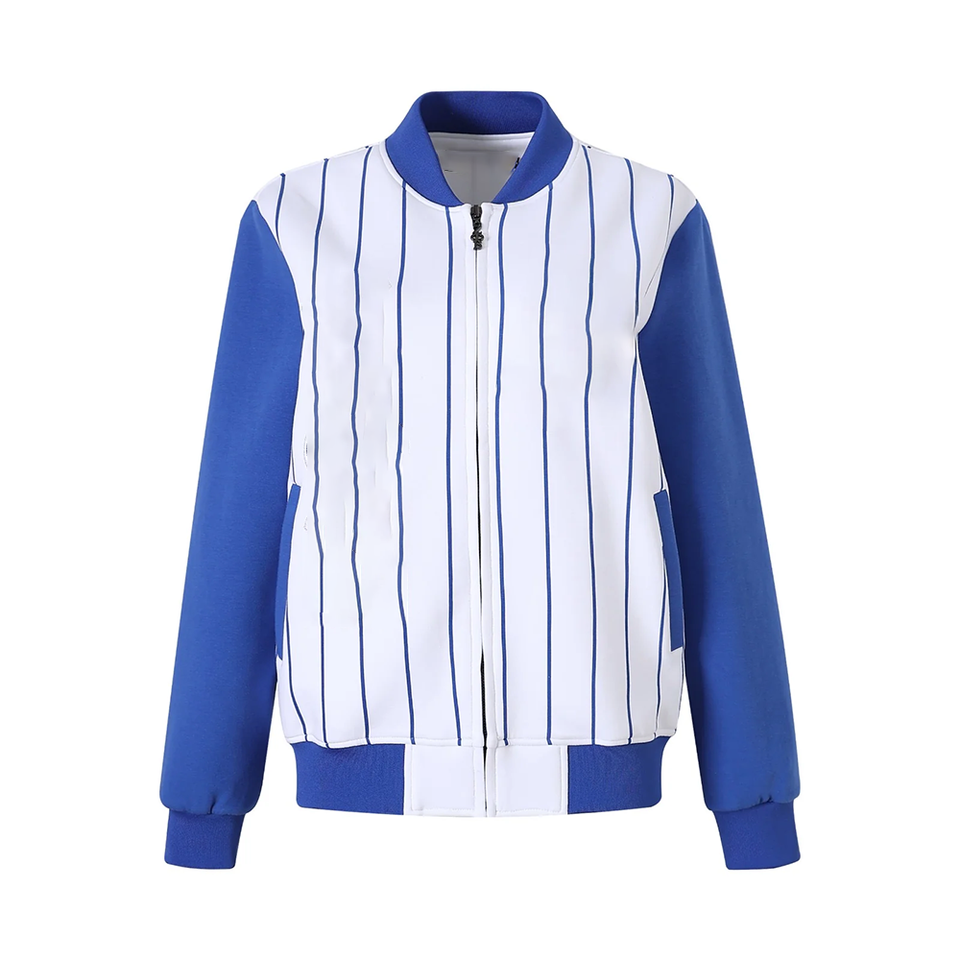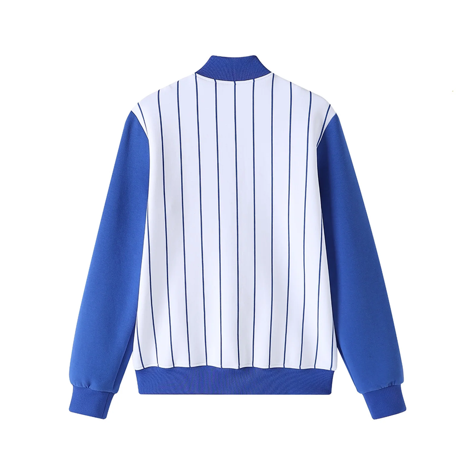 แจ็คเก็ตบอมเบอร์ ZPB สีน้ำเงินขาว ผลิตตามแบบ OEM ขายส่ง เสื้อผ้าสตรีทแวร์สำหรับกลุ่มพี่น้องนักศึกษากรีก กันน้ำ แบบกลับด้านได้ ผ้าไหม/ผ้าฝ้าย ทรงสปริง ด้านหน้าแบบริบ