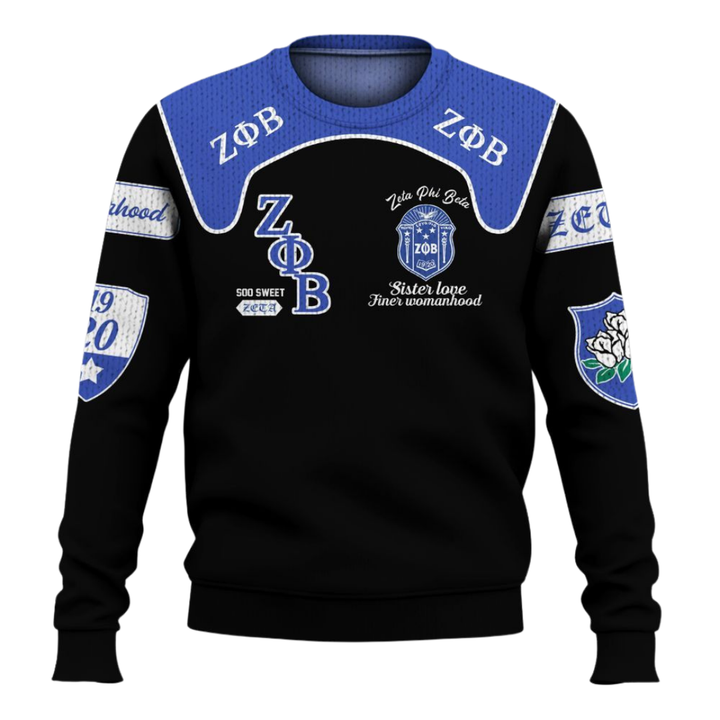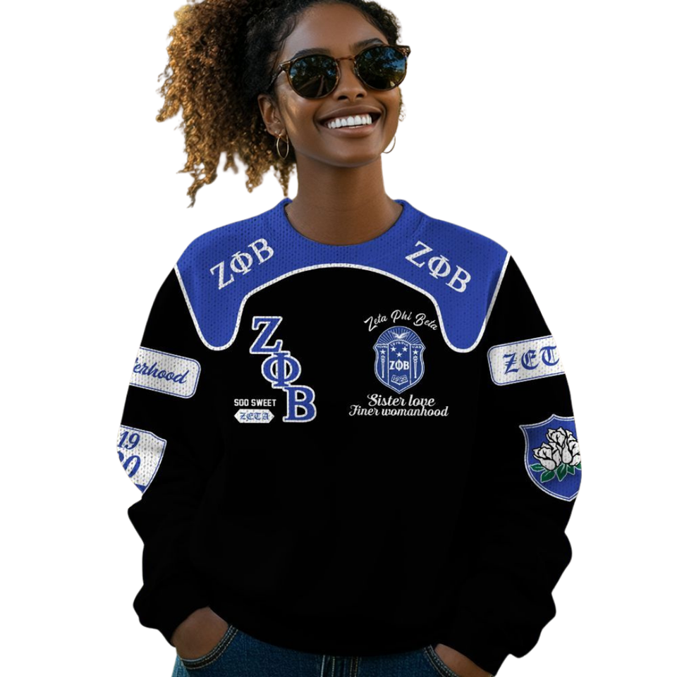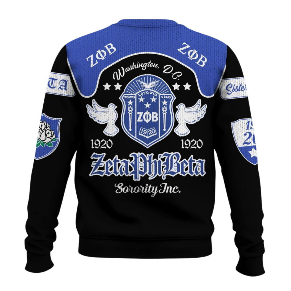 Zeta Phi เสื้อสเวตเตอร์สมาคมสตรีสีขาวน้ำเงิน1920 Zphib ผ้ากำมะหยี่ปักลายกรีก Life เสื้อพรีเมี่ยม