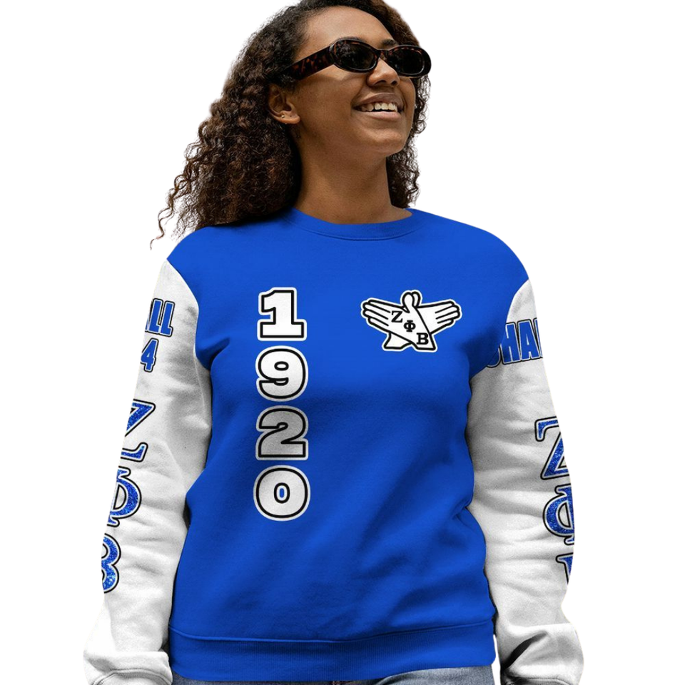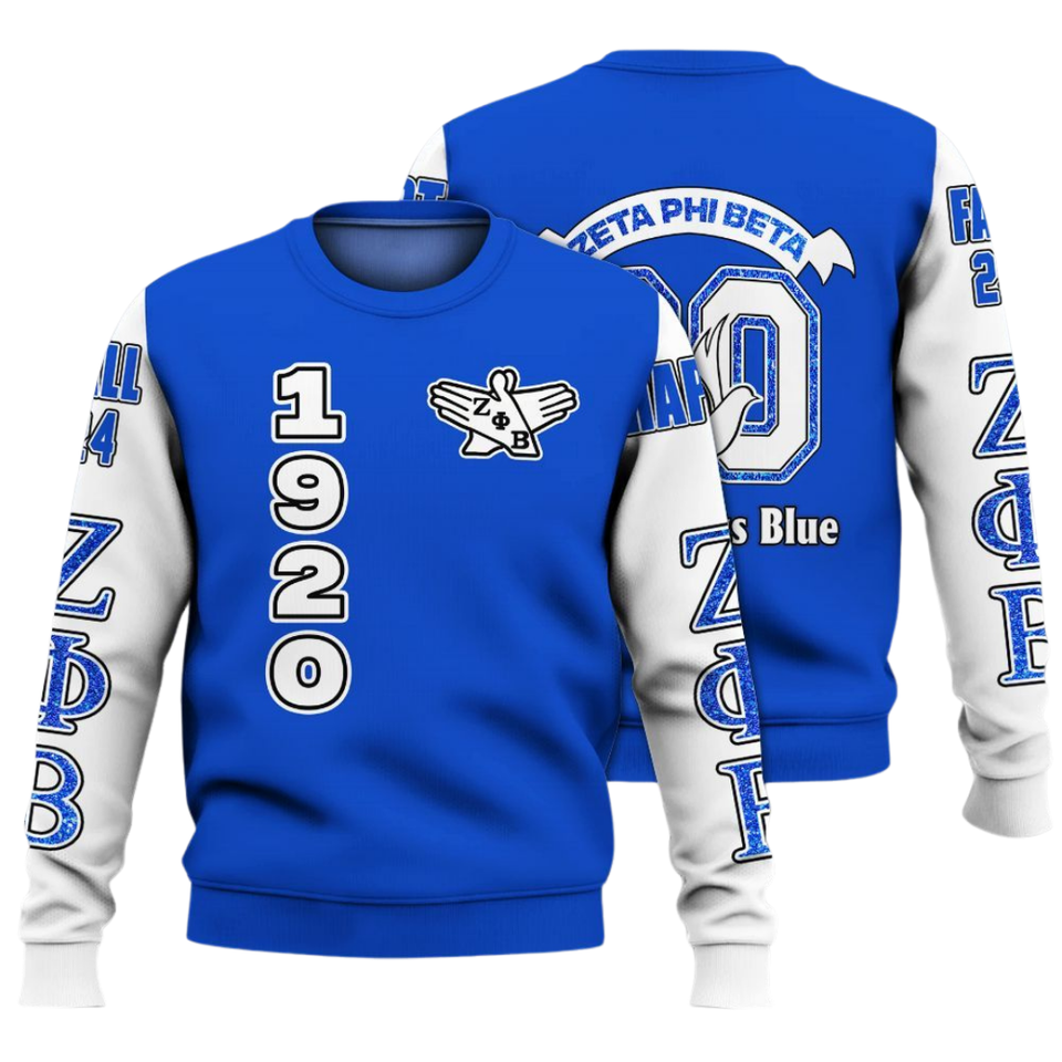 Zeta phi Beta Crewneck เสื้อสเวตเชิ้ตผู้หญิง1920กรีกชุดปักสีฟ้า sorority