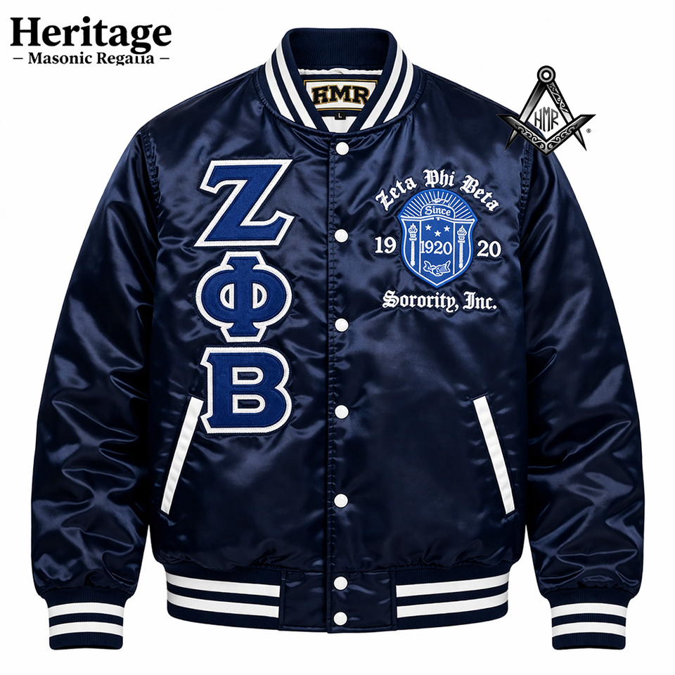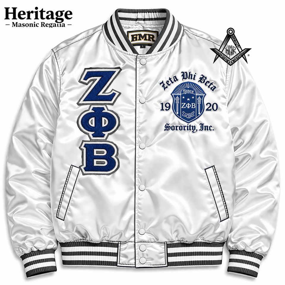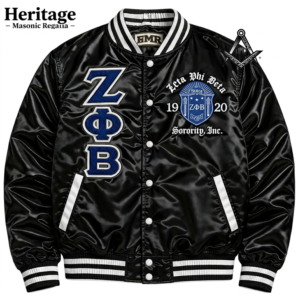 เสื้อแจ็คเก็ตวาร์ซิตี้ Zeta Phi Beta ปักลาย ติดกระดุมแป๊กด้านหน้า ผ้าซาติน น้ำหนักเบา ระบายอากาศได้ดี
