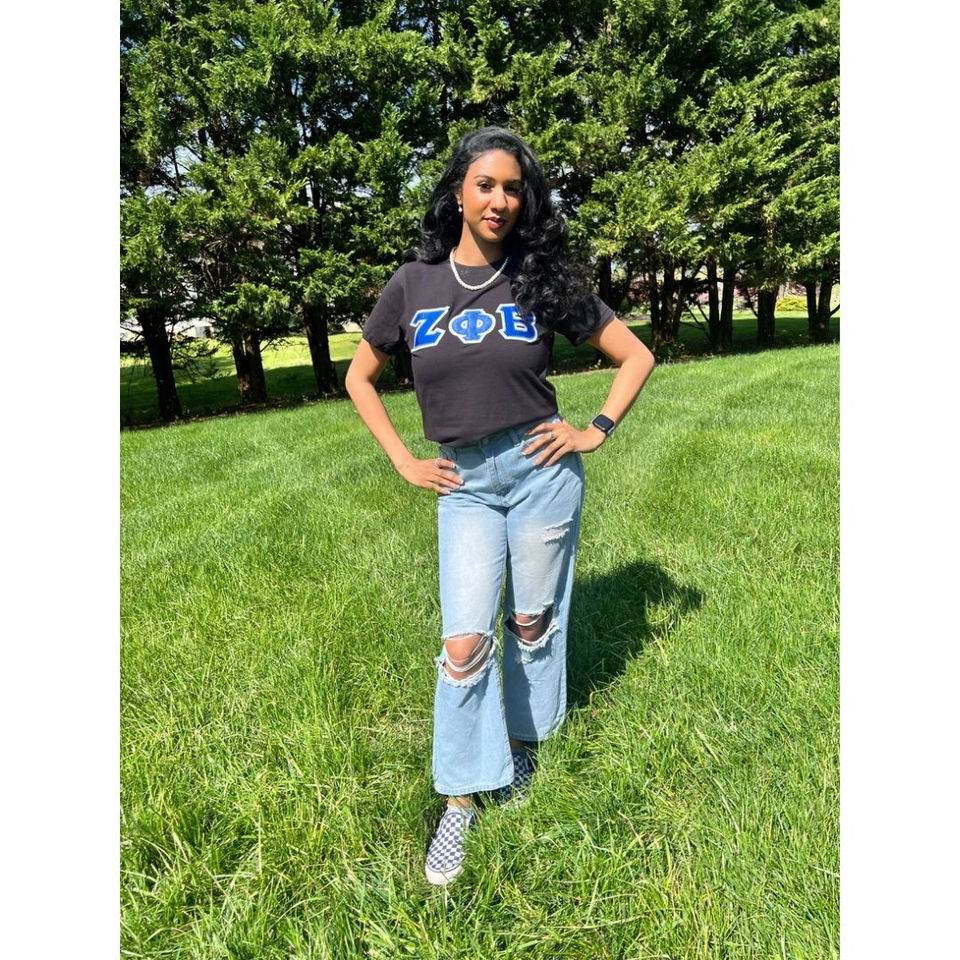 เสื้อยืดตัวอักษรกรีก Zeta Phi Beta สีน้ำเงิน-ดำ ผ้าฝ้าย ยูนิเซ็กซ์ ปักตัวอักษรกรีก เสื้อผ้าสำหรับชมรมพี่น้อง ชุดแสดงความภาคภูมิใจ