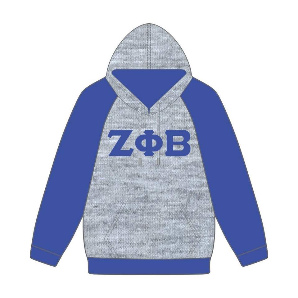 Zeta Phi Beta Grey Body Blue Raglan Sleeves Pullover Hoodie Greek Sorority Apparel Custom Divine Nine HBCU Life Clothing