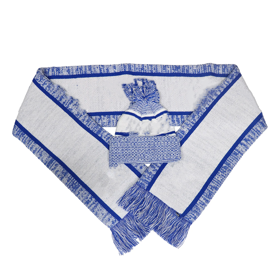 ชุดหมวกบีนนี่ถักลายเรขาคณิตสีน้ำเงินขาวแบบแฮนด์เมด Zeta Phi Beta พร้อมผ้าพันคอแบบยาวมีชายครุย งานฝีมือสำหรับชมรมนักศึกษา ใส่ได้ทั้งชายหญิง เหมาะสำหรับฤดูหนาวและใส่ไปโรงเรียน