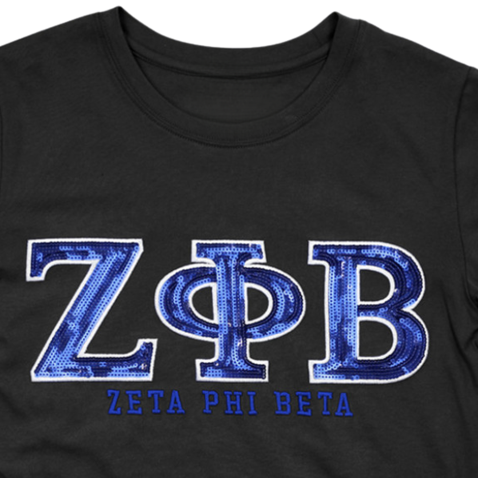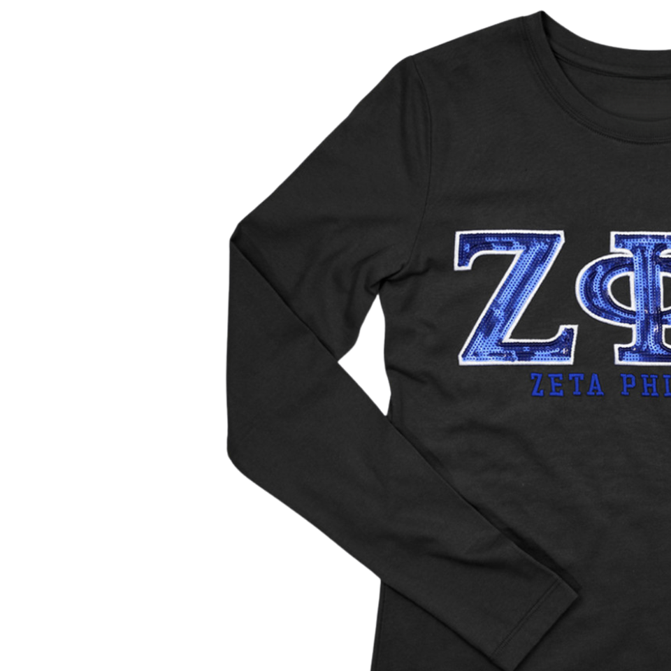 Zeta phi Beta เสื้อยืดแขนยาวมีตัวอักษรสีดำผ้าฝ้ายปักลายภาษากรีกเสื้อผ้าลำลองเสื้อสโมสรนักศึกษา