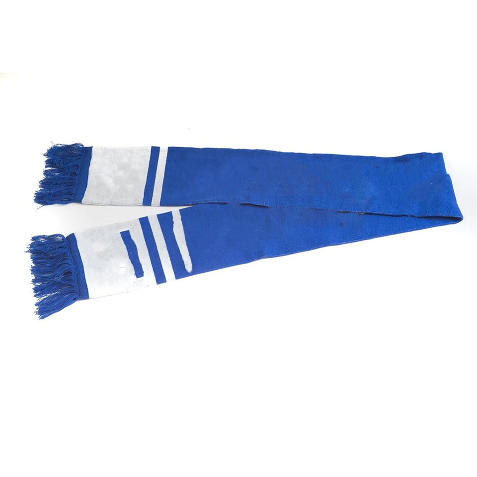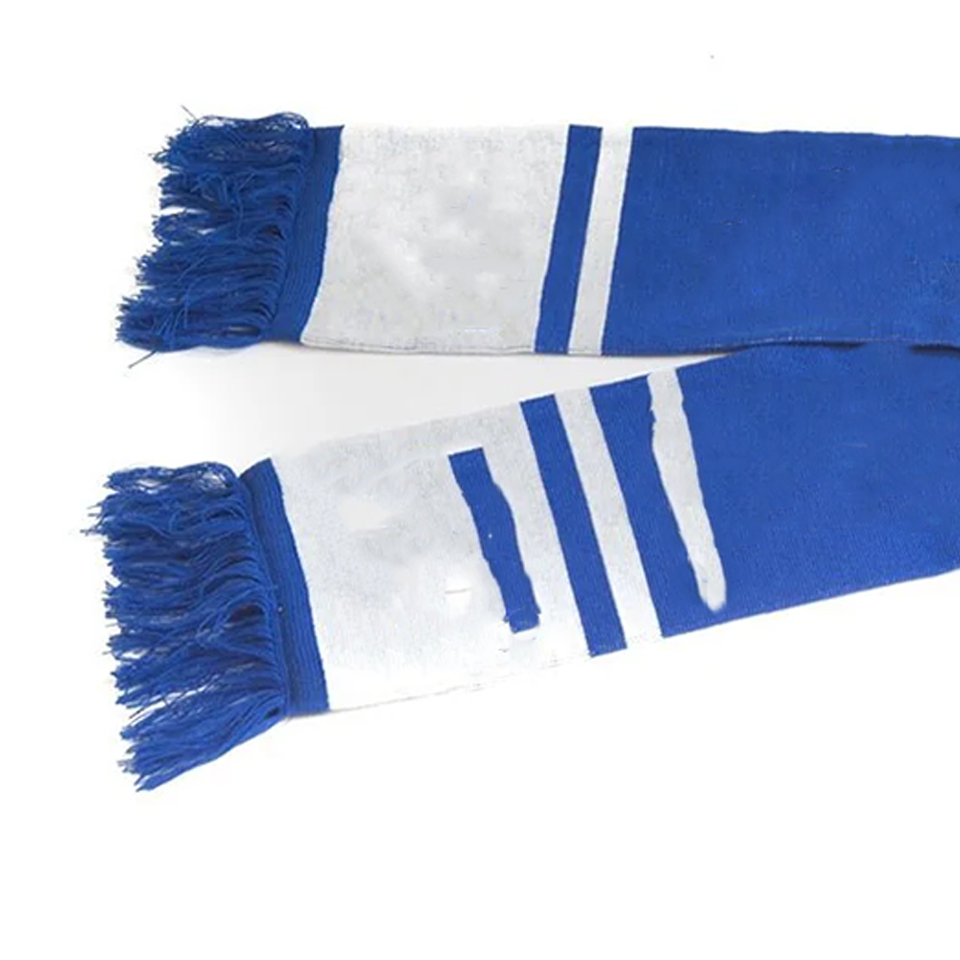ผ้าพันคอสีน้ำเงินรอยัลขาวลายทางถักอะคริลิก แต่งชายครุย ปักลายตามสั่ง สำหรับพี่น้องสมาคมนักศึกษาหญิง Zeta Phi Beta