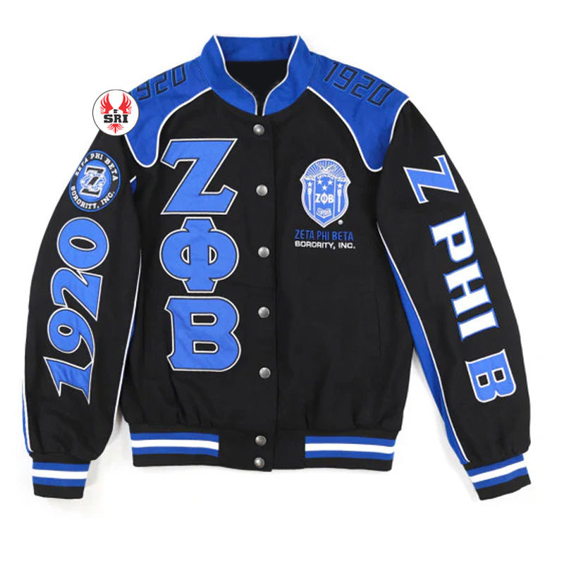Zeta phi Beta เสื้อแจ็คเก็ตนักแข่งรถปักลายสำหรับผู้หญิง zpb sorority