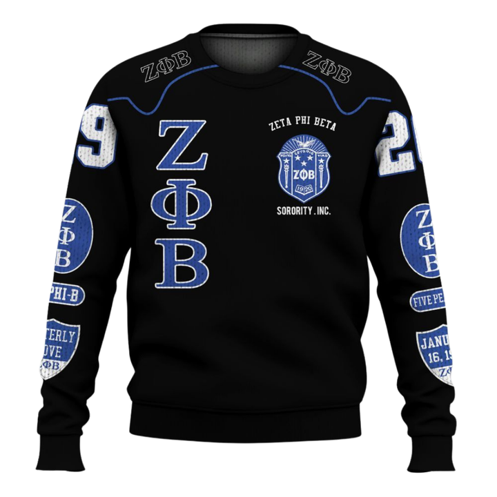 Zeta phi เสื้อสเวตเตอร์ถักสำหรับชมรม zphib สีฟ้าสีขาวกำมะหยี่ปักลาย1920กรีก Life Divine