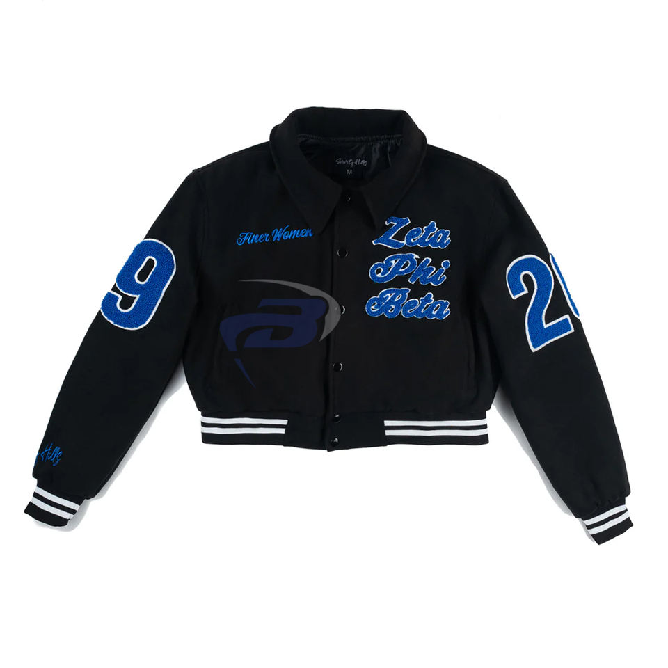 เสื้อแจ็คเก็ตวาร์ซิตี้สำหรับผู้หญิง Zeta Phi Beta Sorority รุ่นฤดูหนาว ดีไซน์ทันสมัย สีดำ ปักลายตัวอักษรแบบหนา มีสไตล์ ระบายอากาศได้ดี
