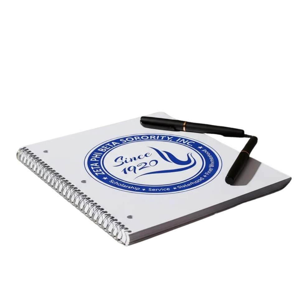 สมุดโน้ตเกลียวซีต้า ฟี เบต้า สีน้ำเงินขาว สมุดบันทึกชมรมกรีก สมุดจดบันทึกสำหรับวิทยาลัย/โรงเรียน สมุดเขียนแบบทนทาน