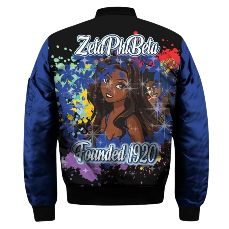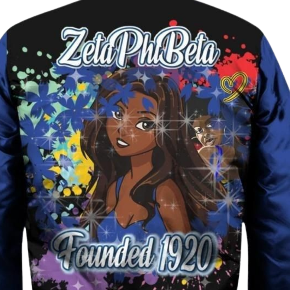 Zeta Phi Beta Womens Satin Jacket 1920 Blue White Premium Greek Apparel ZPB Sorority Shield Embroidery Varsity Style