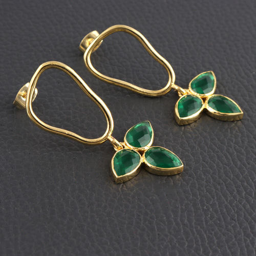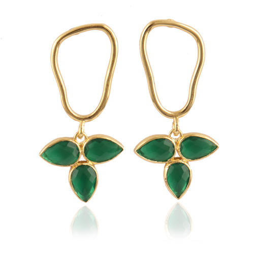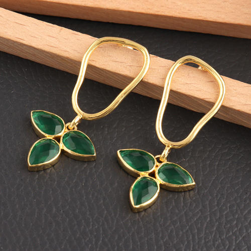 Zeva Jewels Best Wholesaler Women Jewelry 24k Gold Plated Faceted Pear Green Quartz Leaf Style Handmade Collet Set Drop Earring