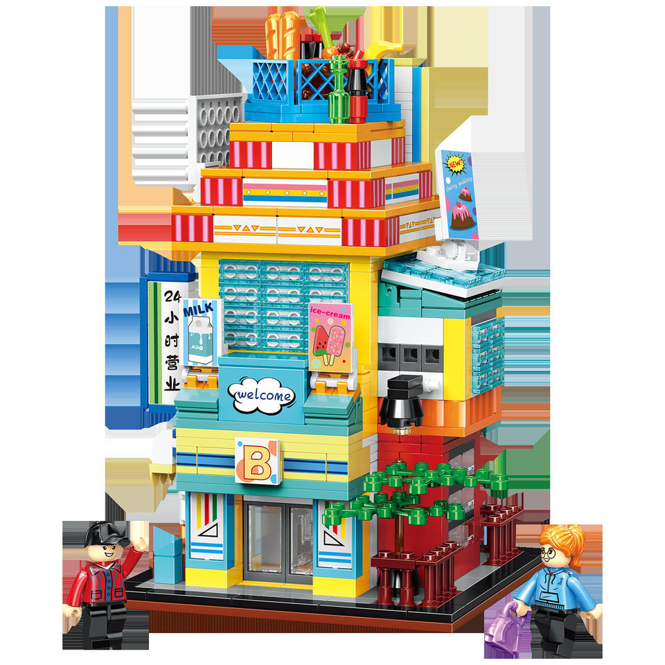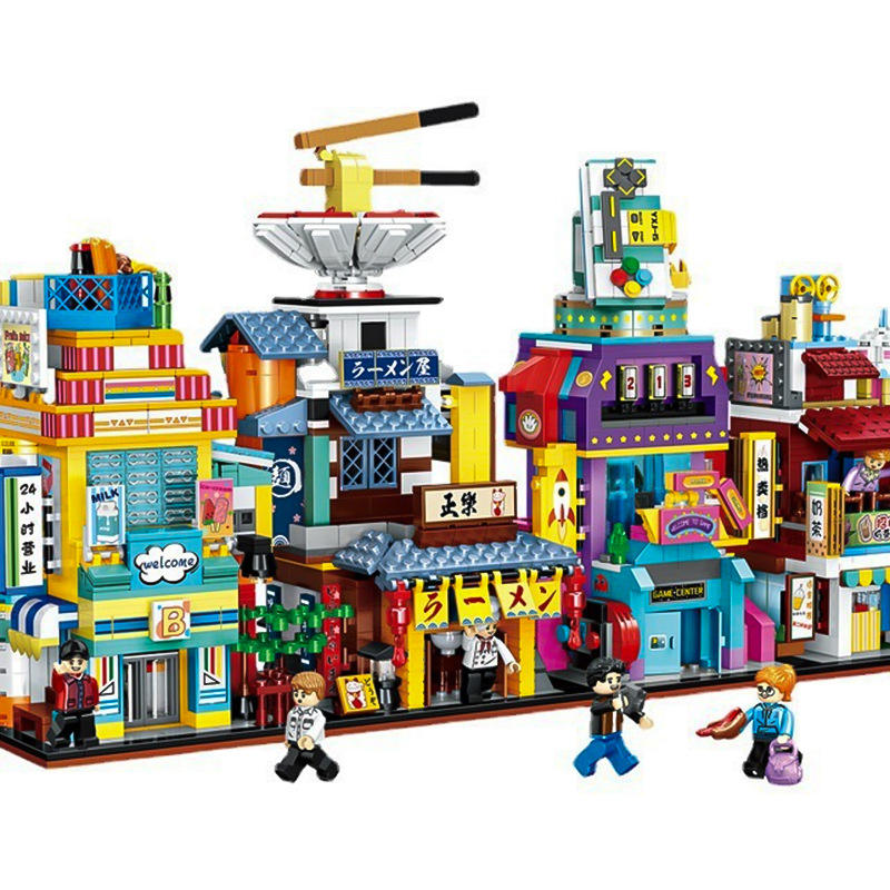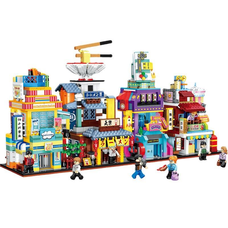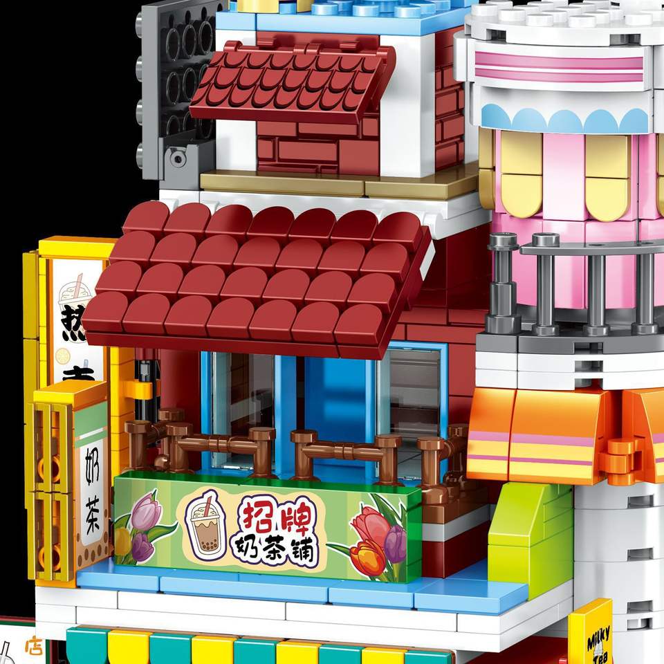 ตัวต่อเซ็ตจี๋เกา มินิซิตี้ สตรีทซีน 756 720 ชิ้น ร้านชานมและราเมง ของเล่นเสริมพัฒนาการสำหรับเด็กอายุ 4-6 ปี