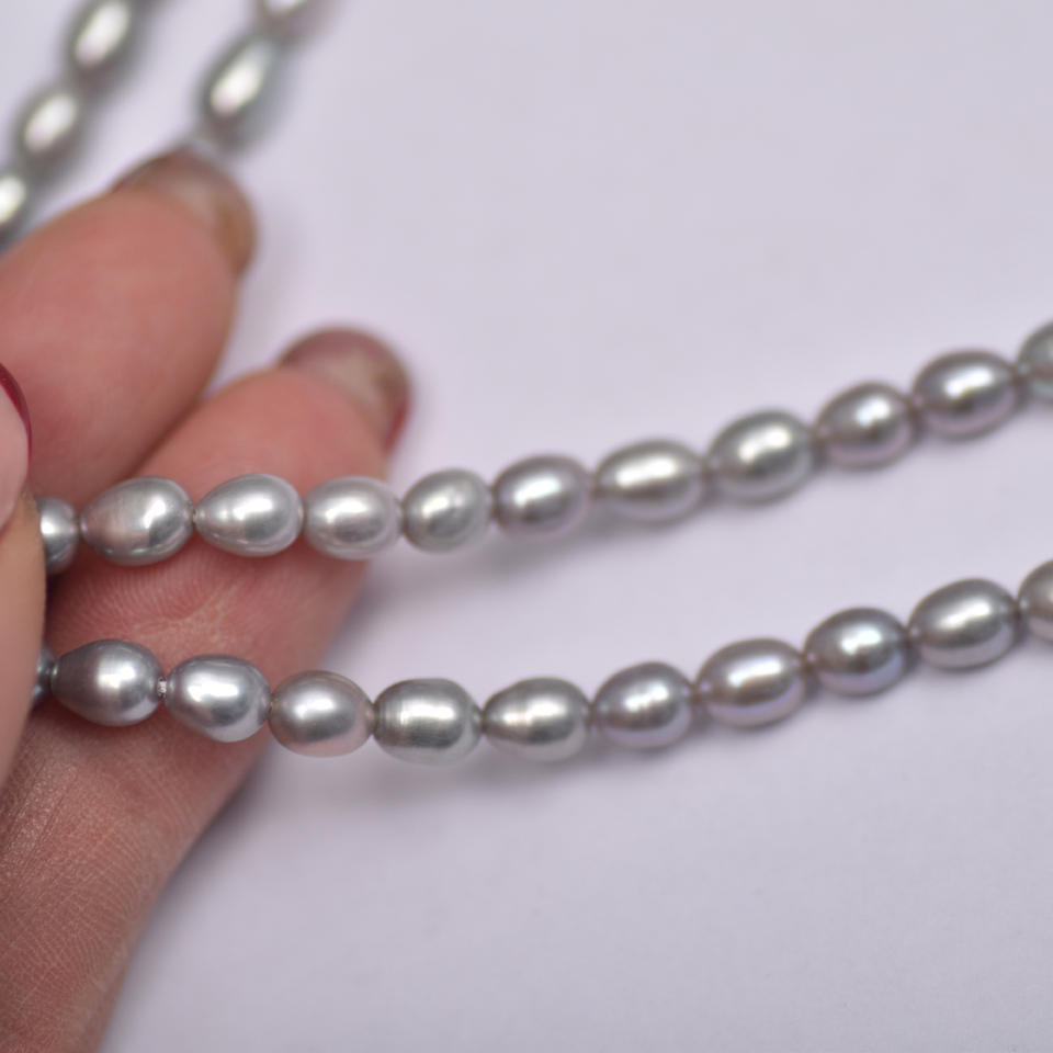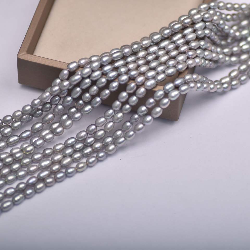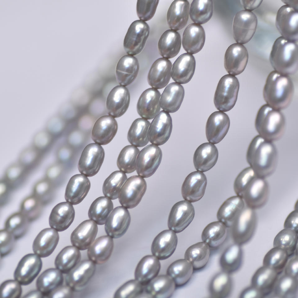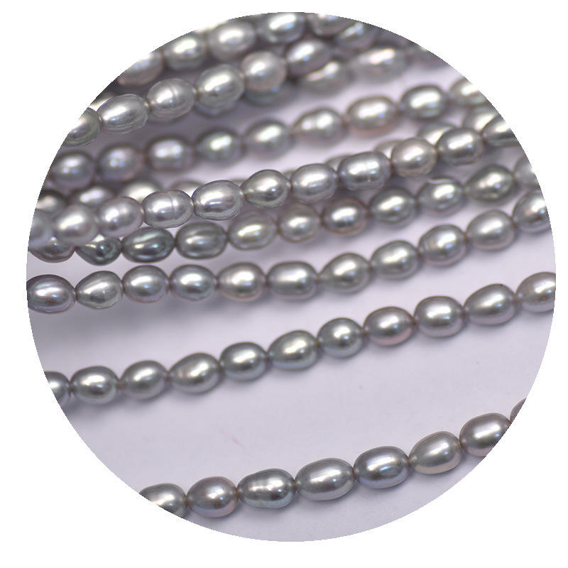 สร้อยคอมุกน้ำจืดสีเทา Zhenduo Ma Mi ขนาด 4-5 มม. มุกข้าวขาว สร้อยมุกแบบหลวม อุปกรณ์ตกแต่งมุก ขายส่ง