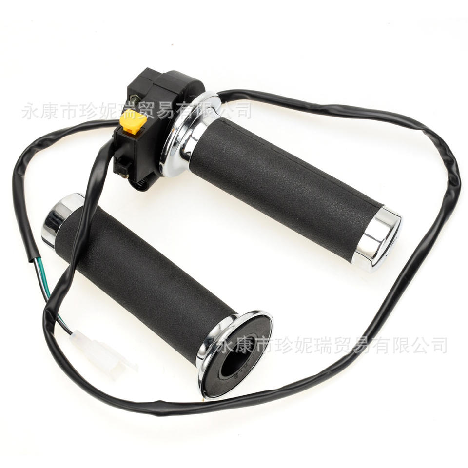 มือจับคันเร่งมอเตอร์ไซค์ Zhenrui พร้อมสวิตช์กุญแจสำหรับสกู๊ตเตอร์ 49cc 60cc 80cc ด้านขวา ยางจับแบบกดปุ่มสตาร์ท