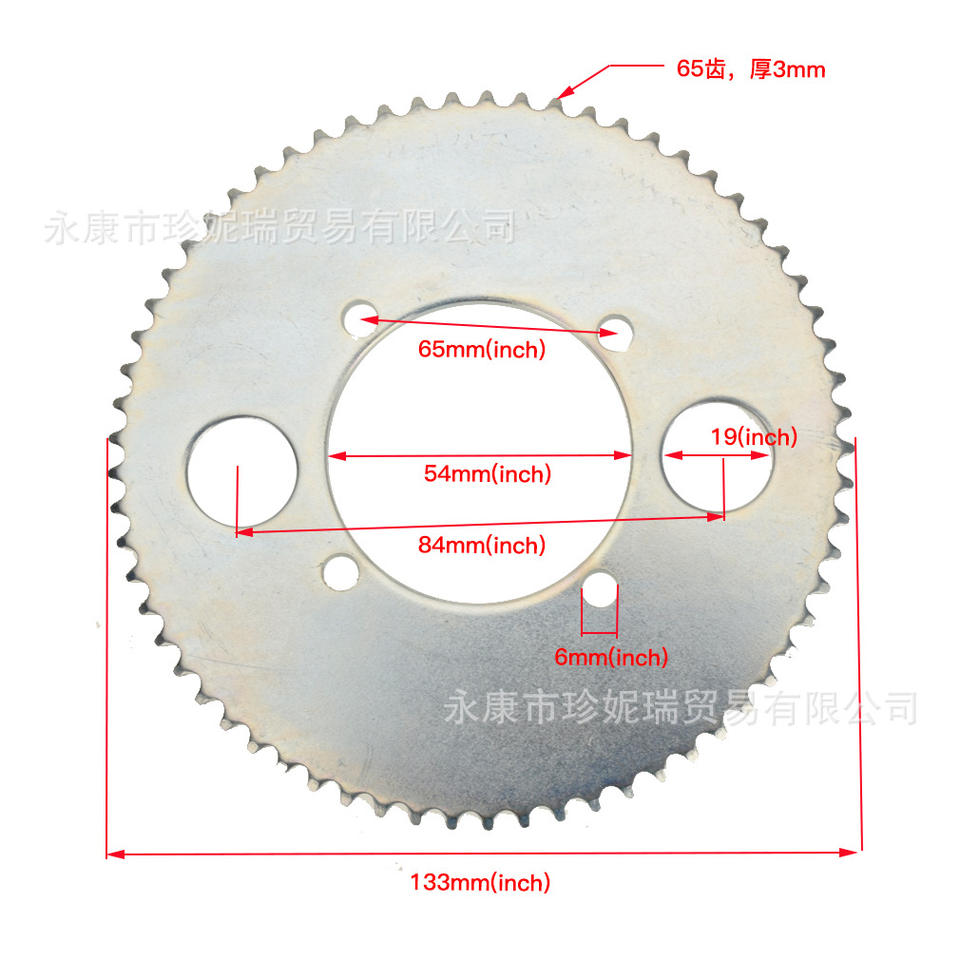 โซ่เหล็ก Zhenrui พร้อมเฟือง 65 ฟัน รู 50 มม. สี่รู สำหรับซ่อมมอเตอร์ไซค์ขนาดเล็กสองจังหวะ