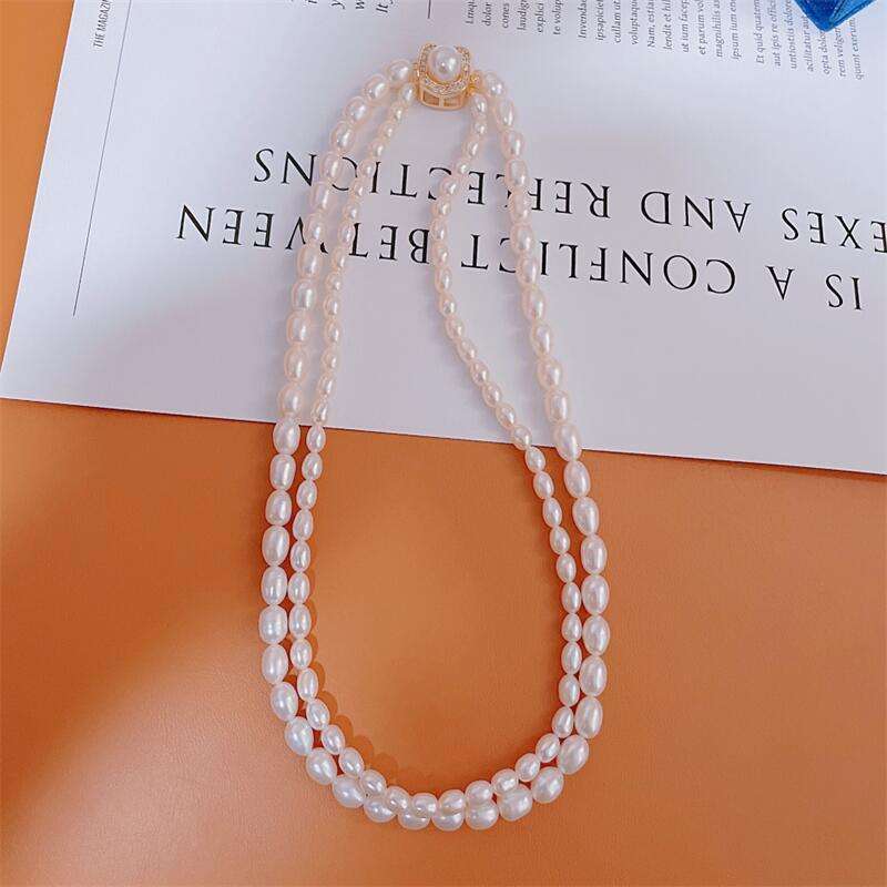 สร้อยคอไข่มุกน้ำจืดสองชั้น ดีไซน์หรูหราทันสมัย พร้อมตัวล็อคแบบสี่เหลี่ยม ช่วยลดอายุ รุ่นใหม่