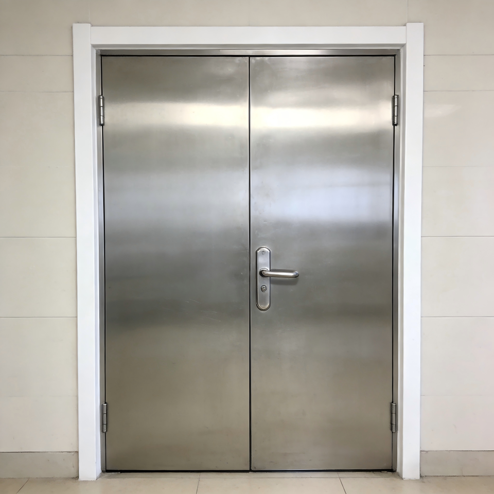 ประตูหนีไฟแบบคู่ จงคุย โมเดิร์น ผลิตจากสแตนเลส ปรับแต่งขนาดและสีได้ พร้อมฉนวนกันความร้อนและกันน้ำ