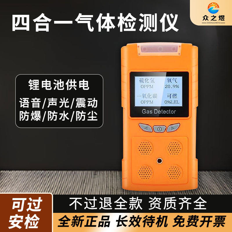 เครื่องตรวจจับก๊าซ 4 in 1 ยี่ห้อ Zhong Zhiyu แบบพกพา พร้อมปั๊มเก็บตัวอย่าง สำหรับตรวจจับออกซิเจน ก๊าซพิษ คาร์บอนมอนอกไซด์ และก๊าซไวไฟ