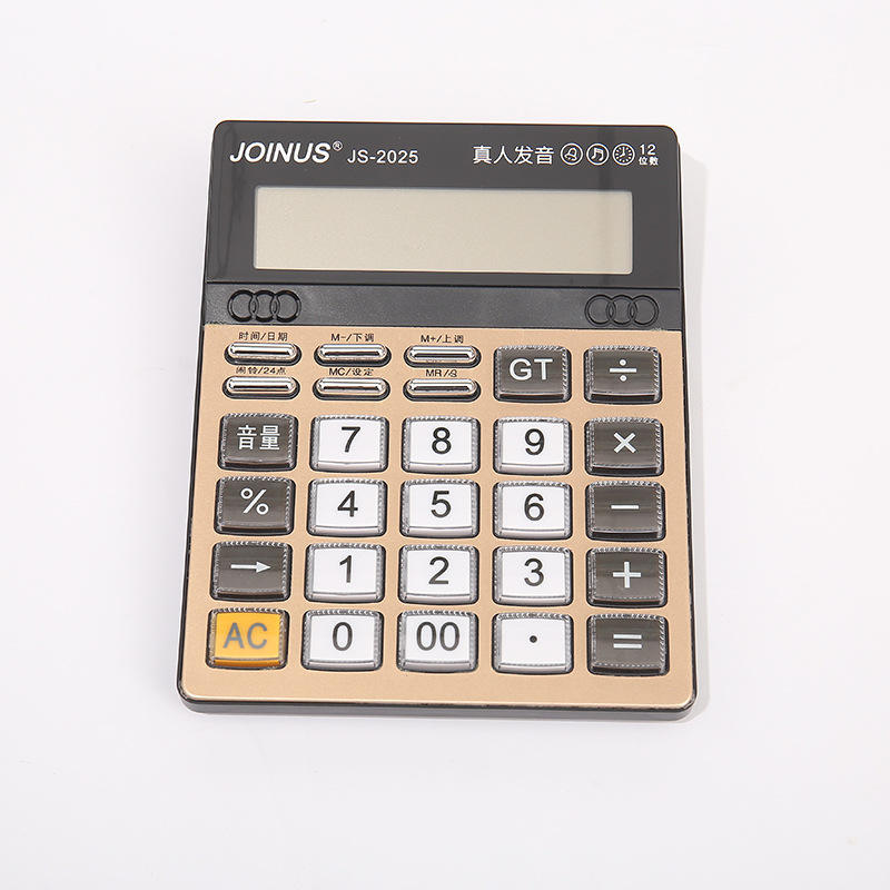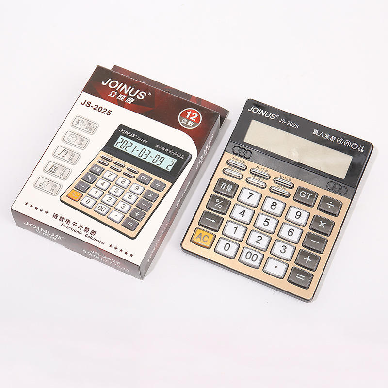เครื่องคิดเลข Zhongcheng Js-2025 12 หลัก ใช้พลังงานสองระบบ สำหรับงานทั่วไป สำนักงาน ตั้งโต๊ะ พร้อมเสียงอ่านออกเสียง สีทอง