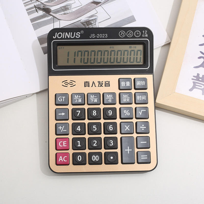 เครื่องคิดเลขเสียง Zhongcheng รุ่น 177X131X37 มม. ผลิตจากวัสดุ ABS และอะลูมิเนียมอัลลอยด์ สำหรับใช้ในสำนักงานและงานทางการเงิน สีดำ พร้อมพิมพ์โลโก้