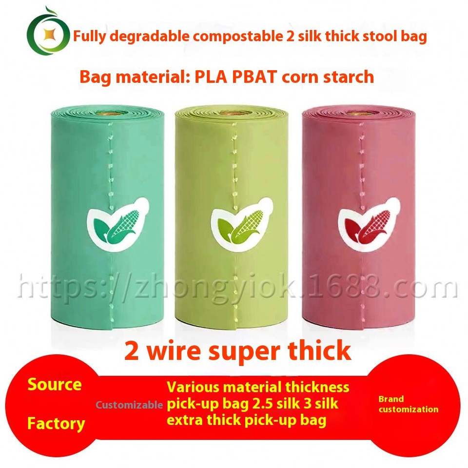 ถุงเก็บมูลสัตว์เลี้ยงแบบย่อยสลายได้ Zhongyi 2 Silk Thick ผลิตจากวัสดุหนา ย่อยสลายได้เต็มที่ ใช้สำหรับเดินเล่นสุนัขกลางแจ้ง ผลิตจากโรงงานโดยตรง
