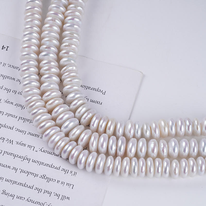 ไข่มุกน้ำจืดสีขาว จูจี้ ขนาด 14-15 มม. ไข่มุกทรงกระดุมธรรมชาติ สำหรับทำสร้อยคอและกำไล รูปทรงแบนกลม มีรูตรงกลาง