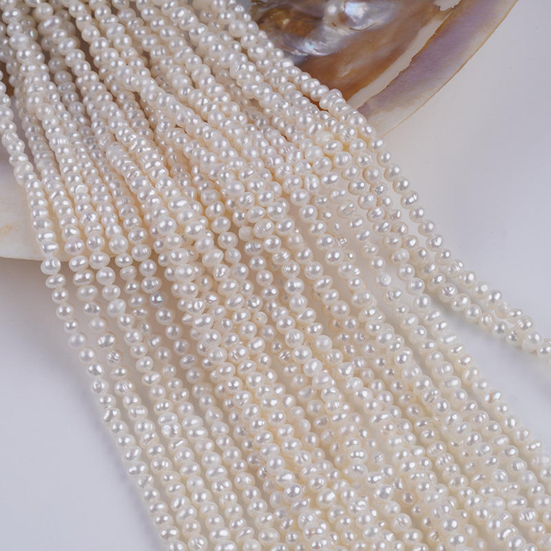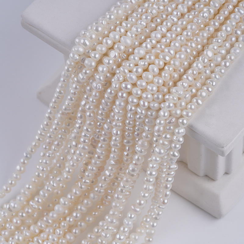 สร้อยคอมุกน้ำจืดธรรมชาติสีขาว จูจี้ ขนาด 3.5-4 มม. ลูกปัดหลวมสำหรับทำเครื่องประดับ DIY พร้อมมุกเทียม ขายส่ง