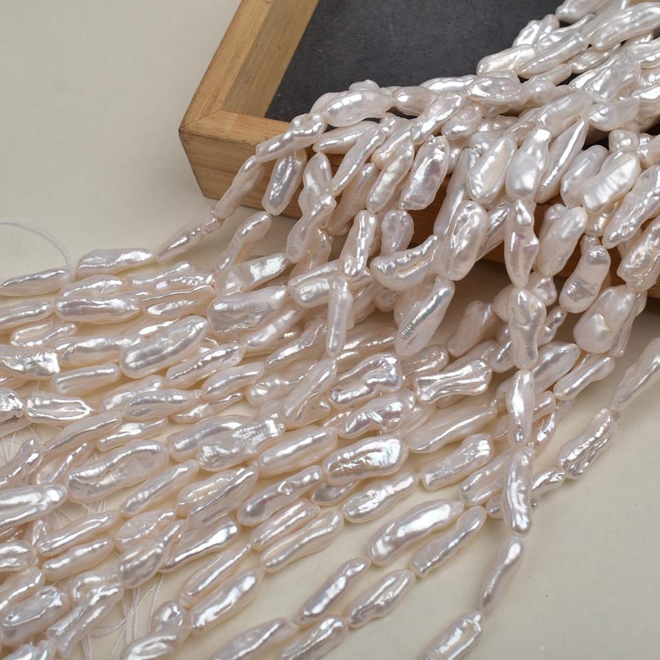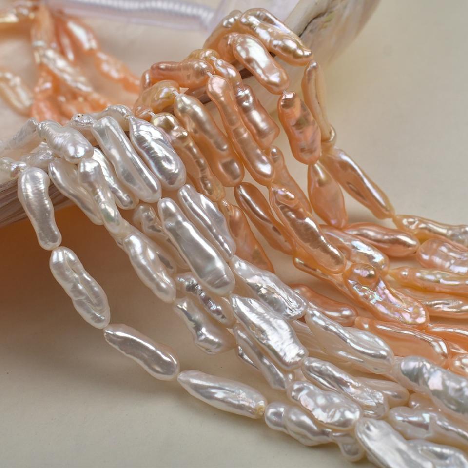 ไข่มุกน้ำจืดทรงบาร็อคสีขาว ขนาด 8-10 มม. ยี่ห้อ Zhuji ร้อยเชือกแบบรูตรง สำหรับทำเครื่องประดับ DIY