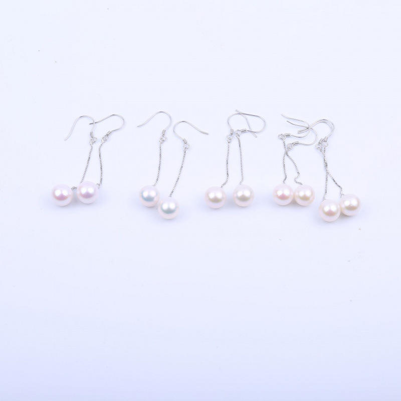 ต่างหูมุกน้ำจืดเกรด AAAA ขนาด 8-11 มม. ทรงกลม ประดับด้วยมุกมีตำหนิเล็กน้อย งานประณีต สวยงาม