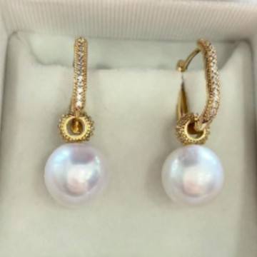 ต่างหูมุกขาวจูจี้ 11-12 มม. ทรงกลม ความสว่างสูงมาก ดีไซน์เงิน S925 เครื่องประดับมุกสุดหรู