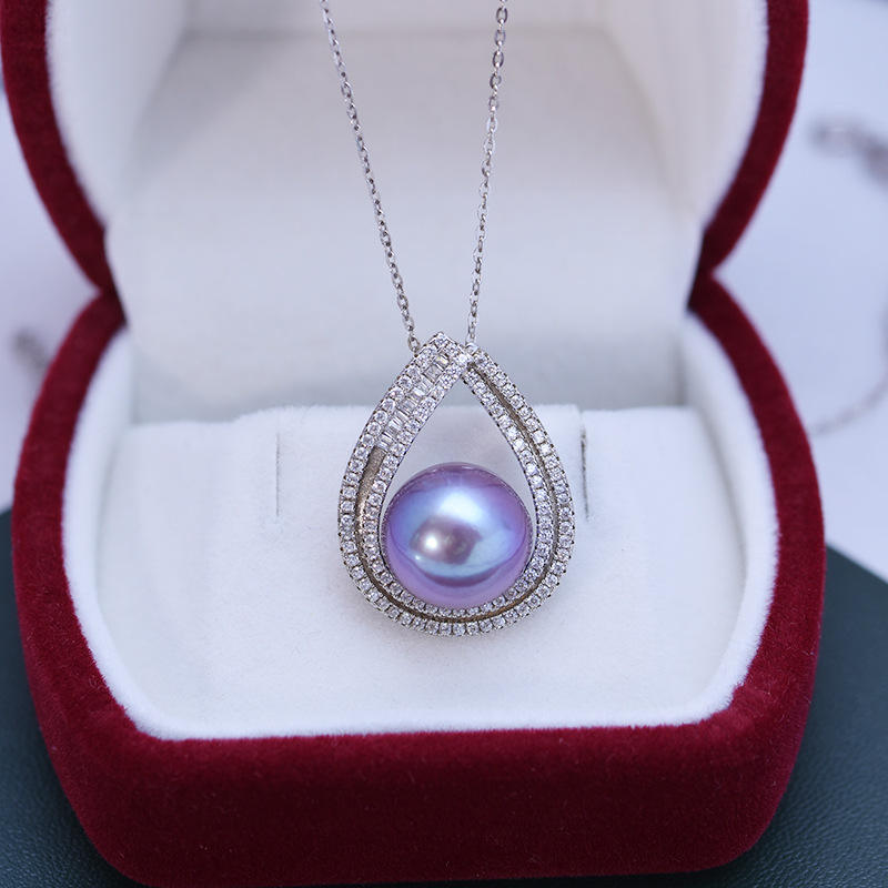 จี้สร้อยคอเงินแท้ S925 ขนาด 11-12 มม. รุ่น Zhuji Danshui ประดับมุกโรเดย์สีม่วงเดมอน แสงสว่างสวยงาม พร้อมตำหนิเล็กน้อย