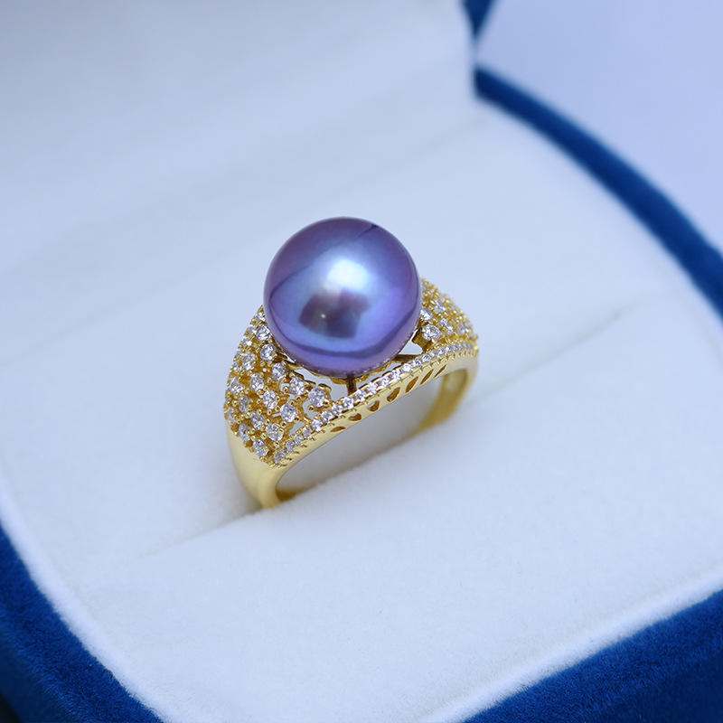 แหวนผู้หญิง Zhuji Danshui ขนาด 12-13 มม. ทรงกลม เงินแท้ S925 ประกายเงางาม พร้อมตำหนิเล็กน้อย ดีไซน์เปิด จำหน่ายสดแบบข้ามพรมแดน
