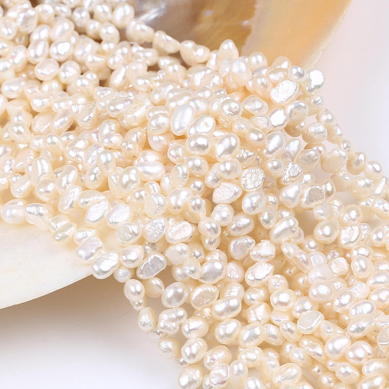 ลูกปัดมุกน้ำจืดธรรมชาติทรงบาร็อค 5-6 มม. ทำมือจากจูจี้ ร้อยเป็นเส้น แบบสองด้าน มีรูตรงกลาง สีขาว สำหรับทำเครื่องประดับ DIY