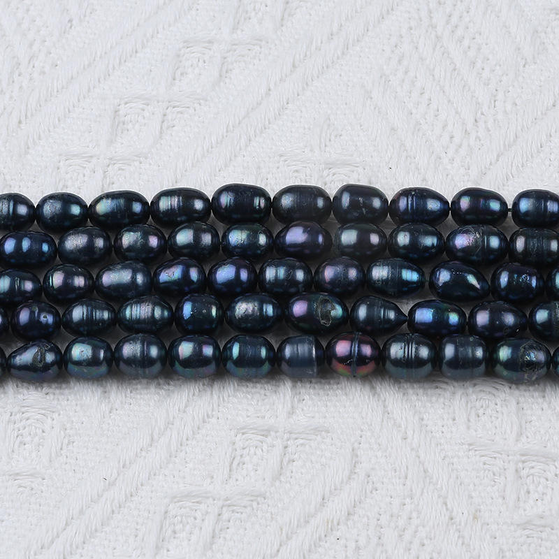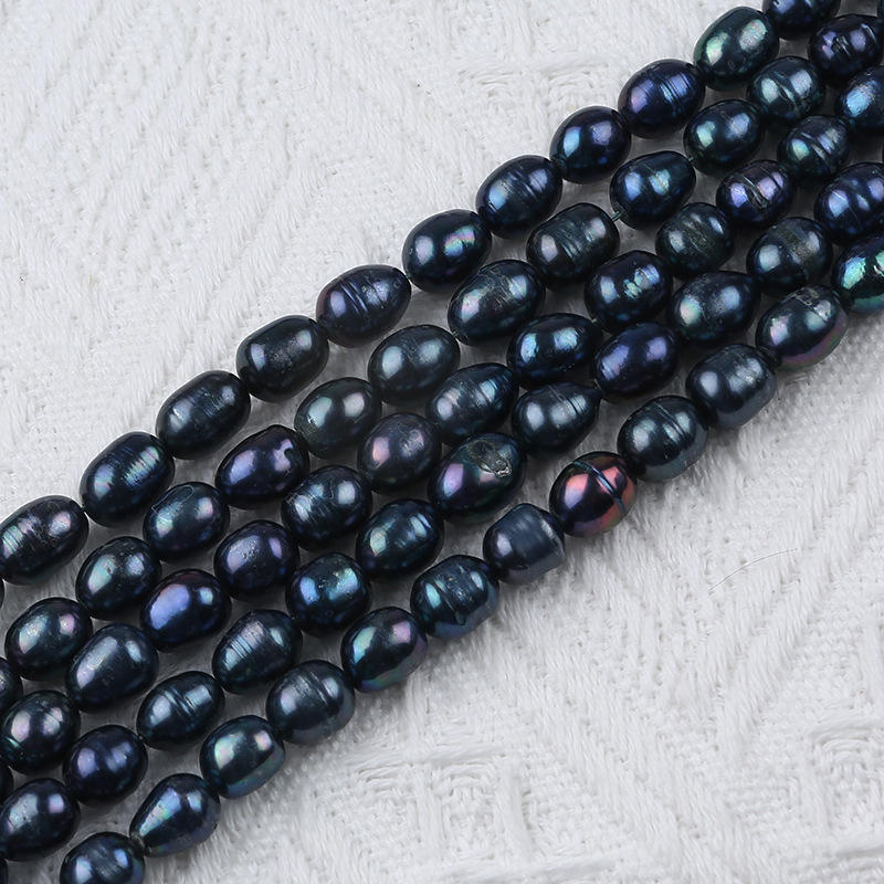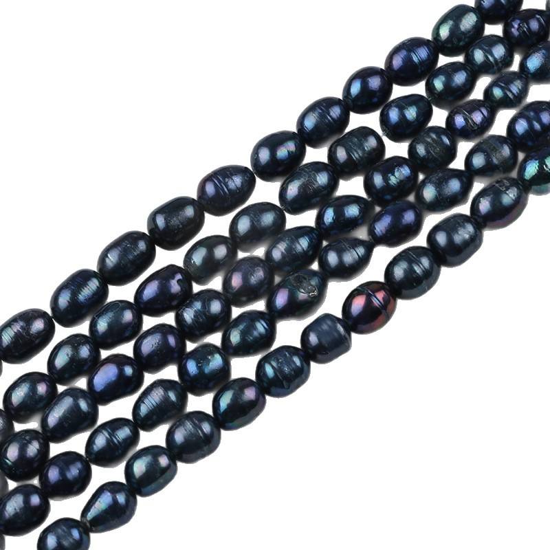 ไข่มุกน้ำจืดธรรมชาติทำมือจูจี้ ขนาด 8-9 มม. รูปทรงข้าวสีดำ ร้อยเชือกแบบรูตรง หลากสี สำหรับงาน DIY ไข่มุกแบบกระจาย