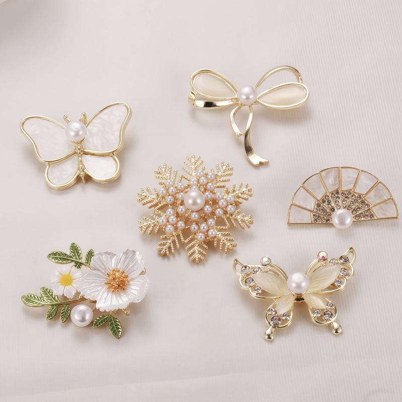 เข็มกลัดรูปโบว์ประดับมุกน้ำจืดสำหรับผู้หญิงจาก Zhuji Jewelry ดีไซน์ทันสมัย ใช้เป็นตัวล็อคผ้าพันคอไหมกันลื่น รูปทรงผีเสื้อ