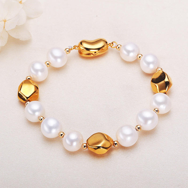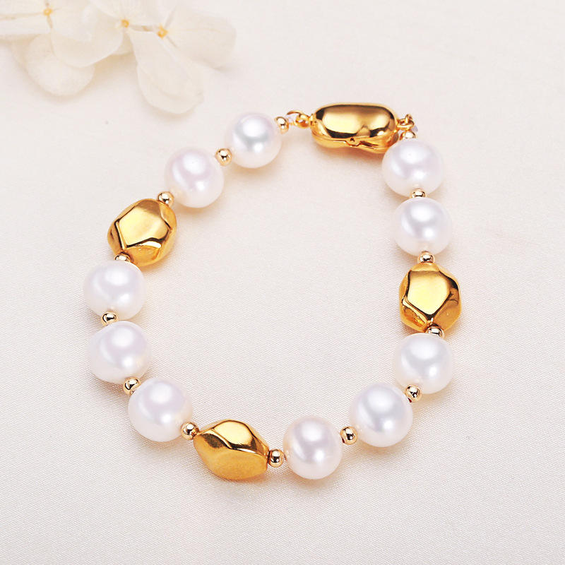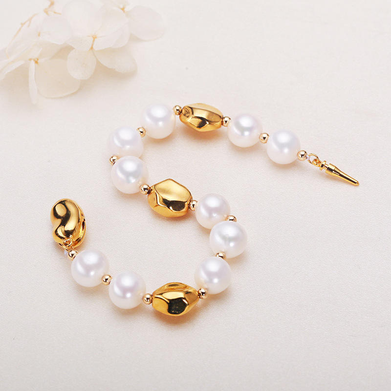 สร้อยข้อมือไข่มุกน้ำจืดแท้จาก Zhuji Jewelry พร้อมสร้อยข้อมือแฟชั่นทรงเรขาคณิตส่วนบุคคล ทำจากไทเทเนียมสตีล