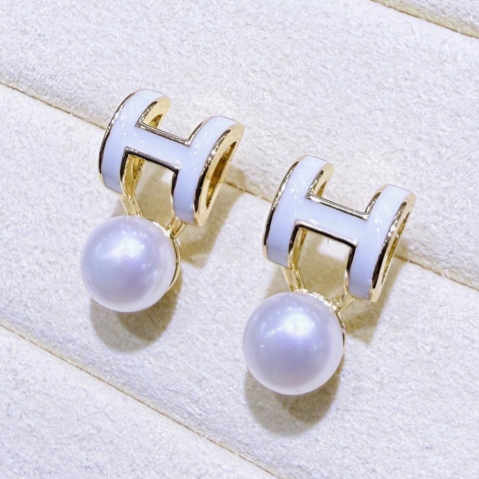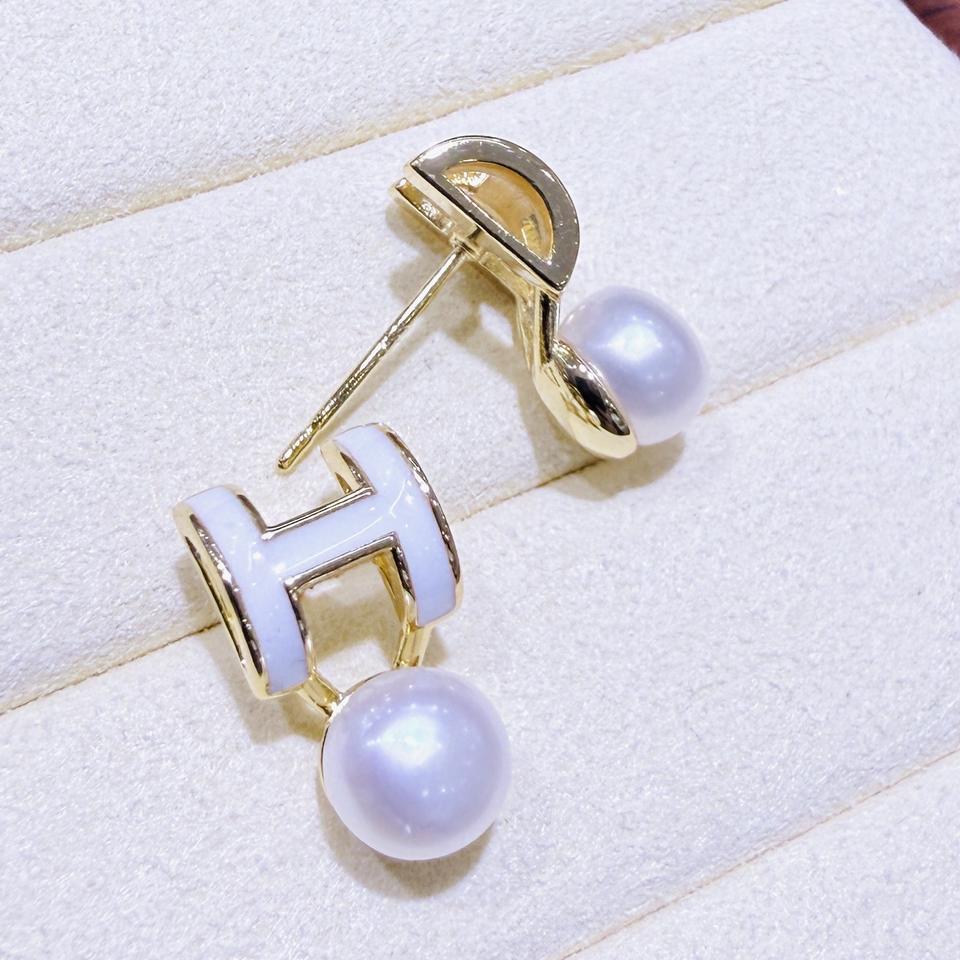 ต่างหูห้อยทอง 14K หรูหราจาก Zhuji ประดับมุกน้ำจืดและเคลือบเงาแบบหยดน้ำ ตัวอักษร H สำหรับผู้หญิง ดีไซน์เรียบหรู ขายส่ง