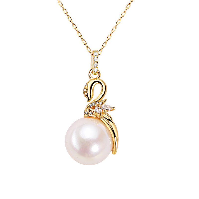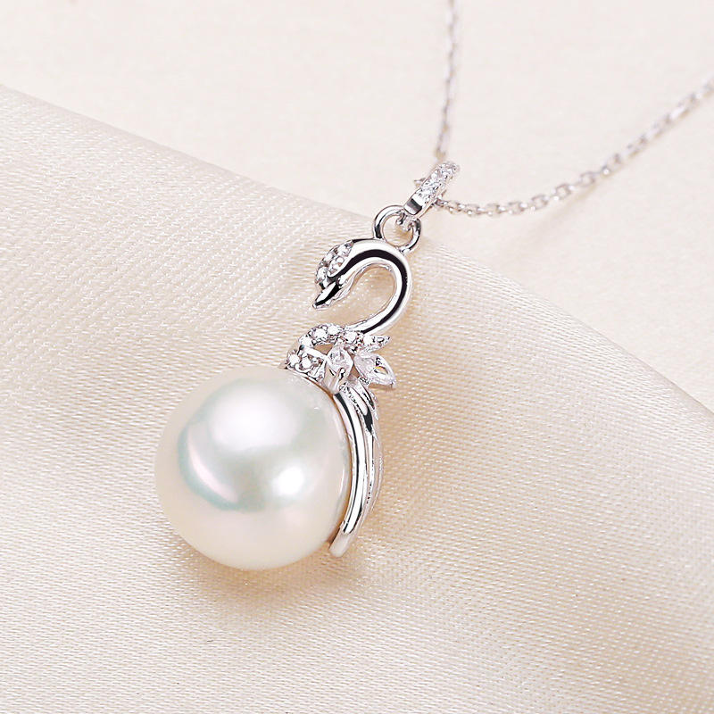 สร้อยคอจี้หงส์เงินแท้ 925 ระดับไฮเอนด์จาก Zhuji ประดับมุกน้ำจืดแท้ พร้อมสายคล้องคอและจี้มุก