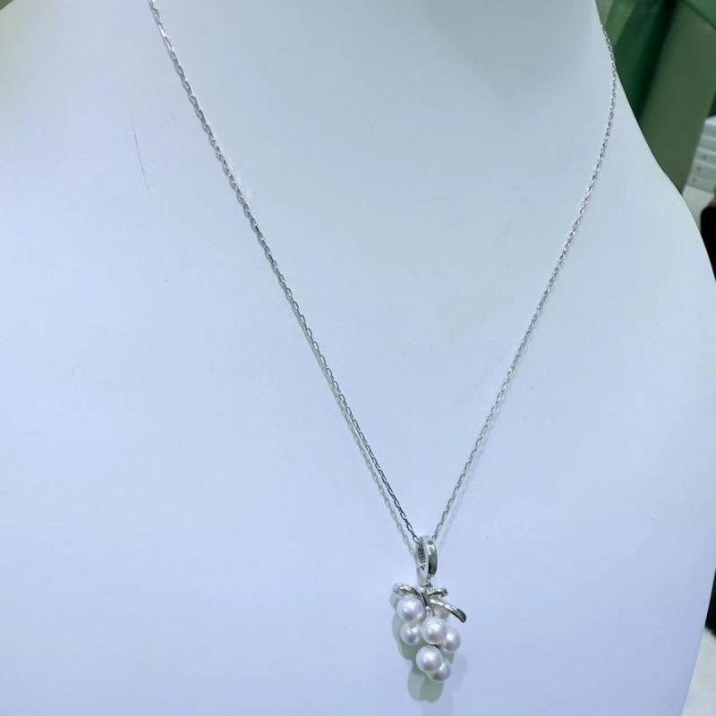 สร้อยคอไข่มุกน้ำจืดทรงกลมขนาด 5-6 มม. ไร้ตำหนิ รุ่นออโรร่า ของ Zhuji M พร้อมจี้ไข่มุกดีไซน์เฉพาะตัว