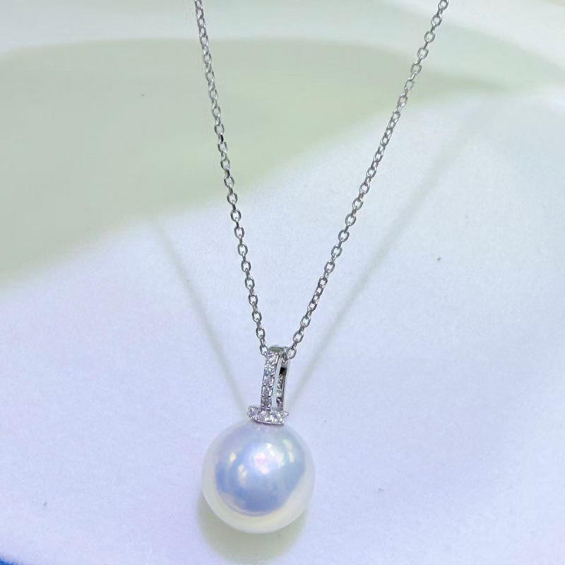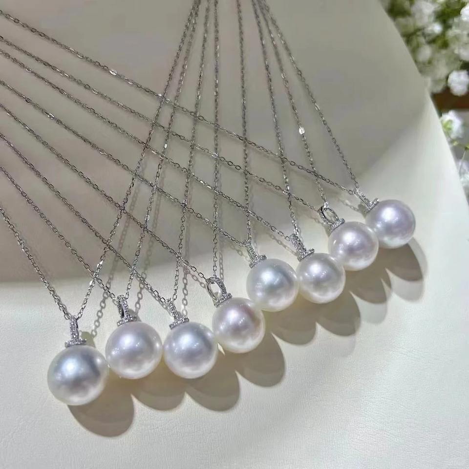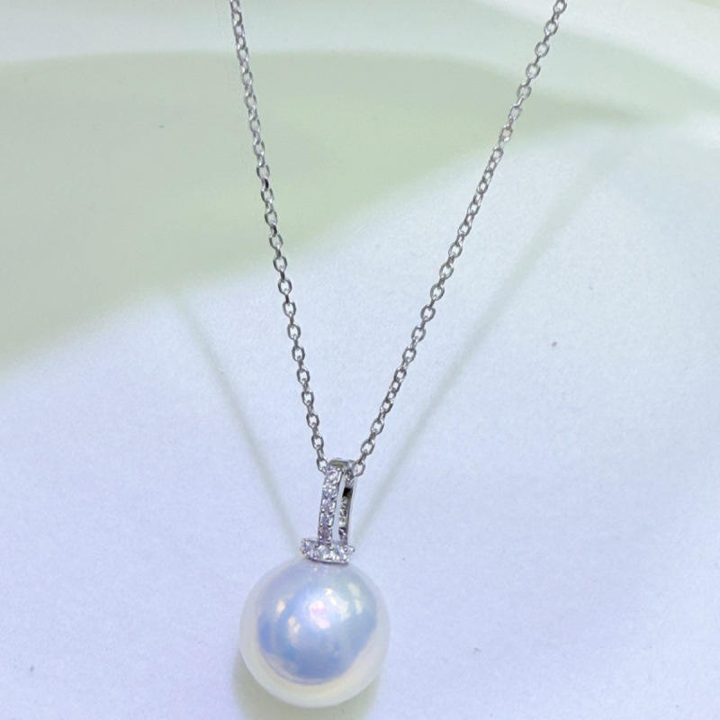 สร้อยคอมุกน้ำจืดธรรมชาติจูจี้ ขนาด 12-13 มม. ทรงกลม คุณภาพดีมาก มีตำหนิเล็กน้อย จี้เงินแท้ทรงหัวนม สไตล์คลาสสิก